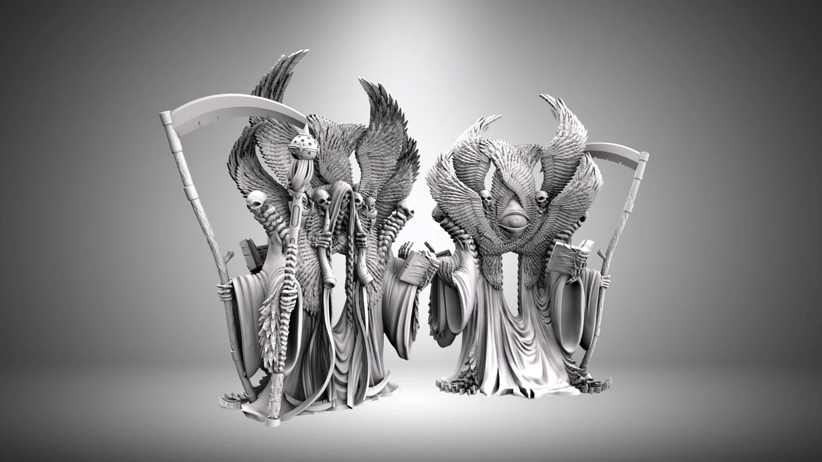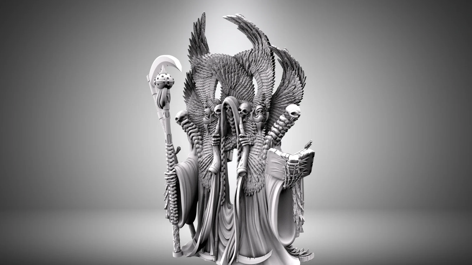 Printable miniature model at about 75mm eyeline - Serrak the Reaper for Aether Studios collection.