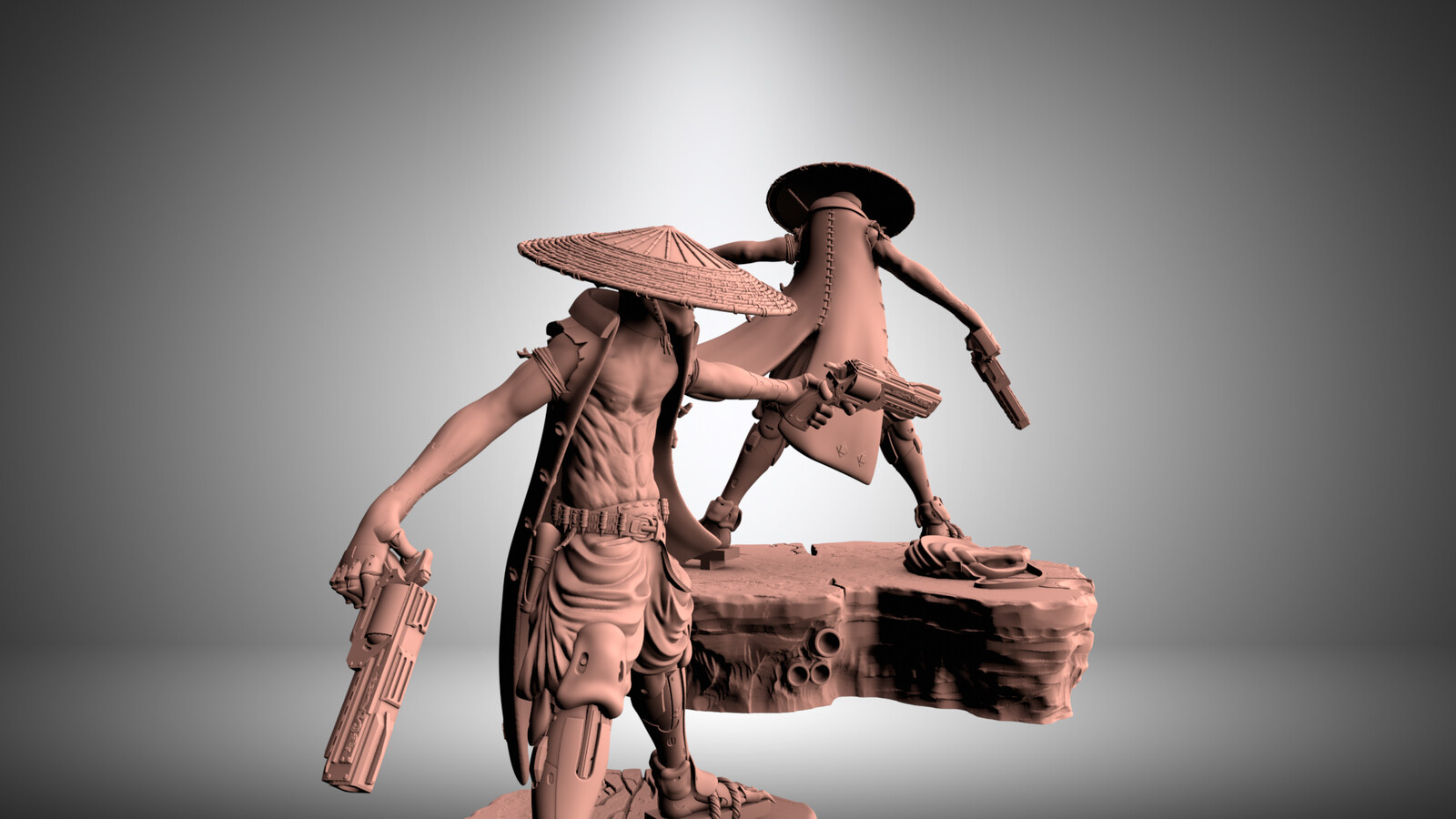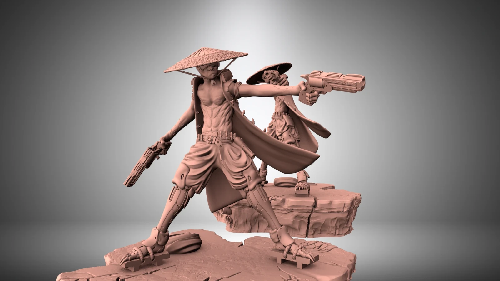 Personal project on a cyberpunk action character printable in 3 parts - 4 including the base. Height comes to 12cm at hat top.